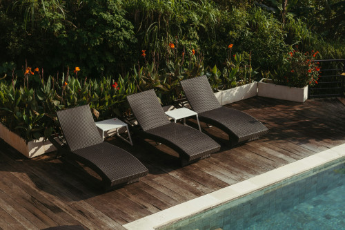 - Kombinerar återvunnen plast och trä för en hållbar design